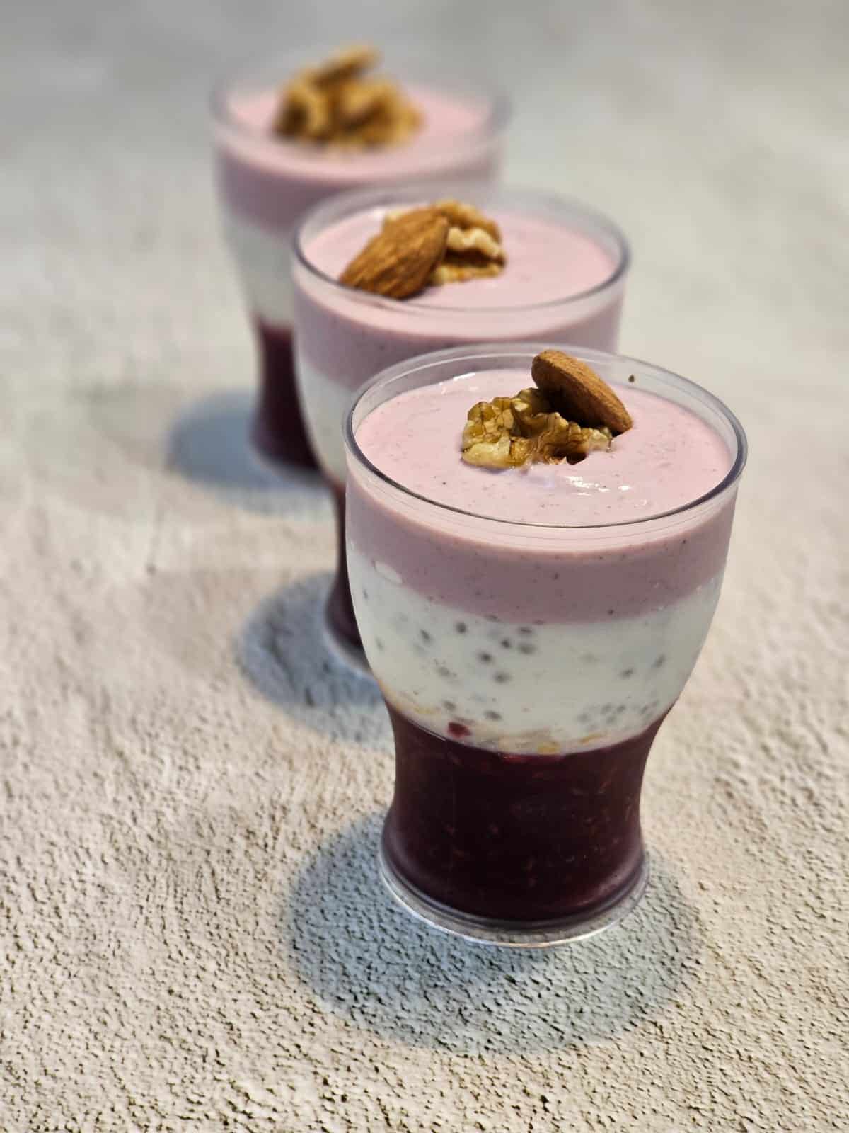 שמים בקערה את היוגורטים, מוסיפים את הצ'יה שהשרנו במים.