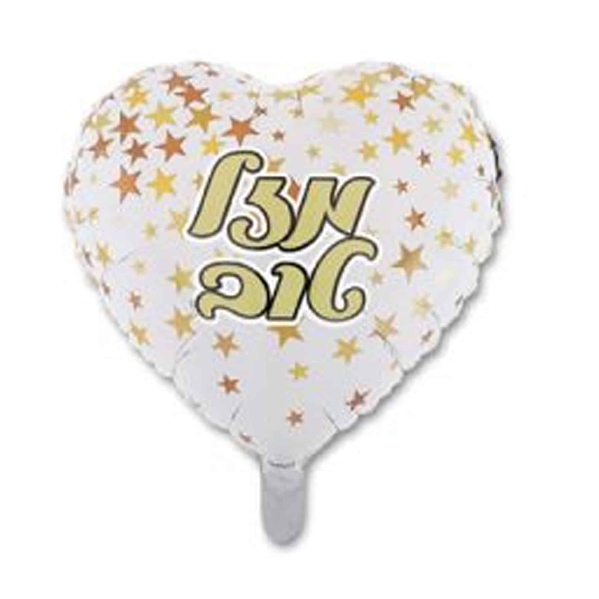 בלון מיילר 18 – לב מזל טוב זהב על לבן