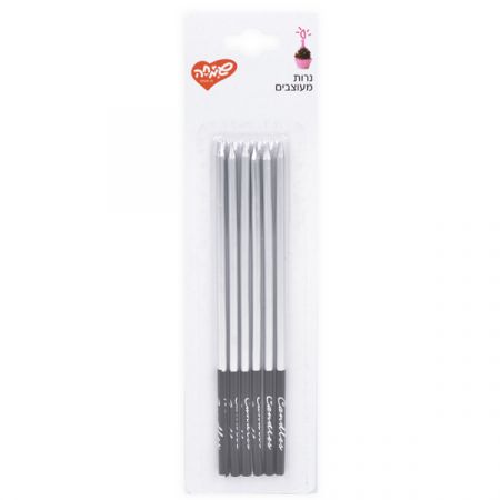 נרות מטאלים ארוכים שחור כסף גליטר 12 יחידות.