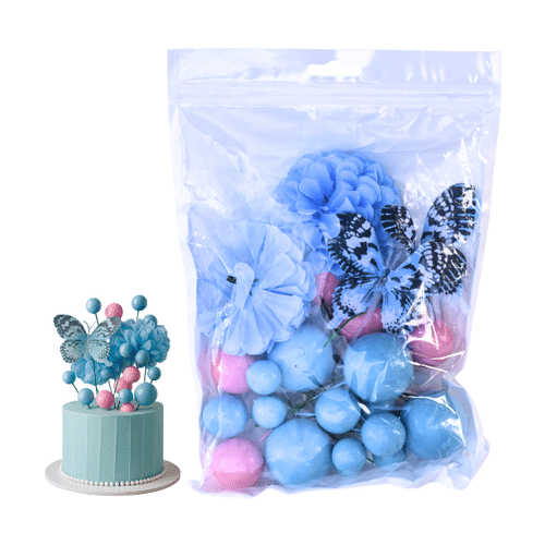 סט טופרים 19 כדורים 2 פרפרים 2 פרחים ורוד כחול