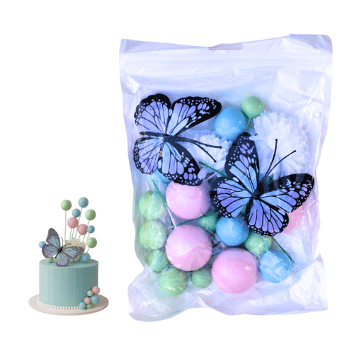 סט טופרים 19 כדורים 2 פרפרים 2 פרחים תכלת מנטה ורוד בהיר