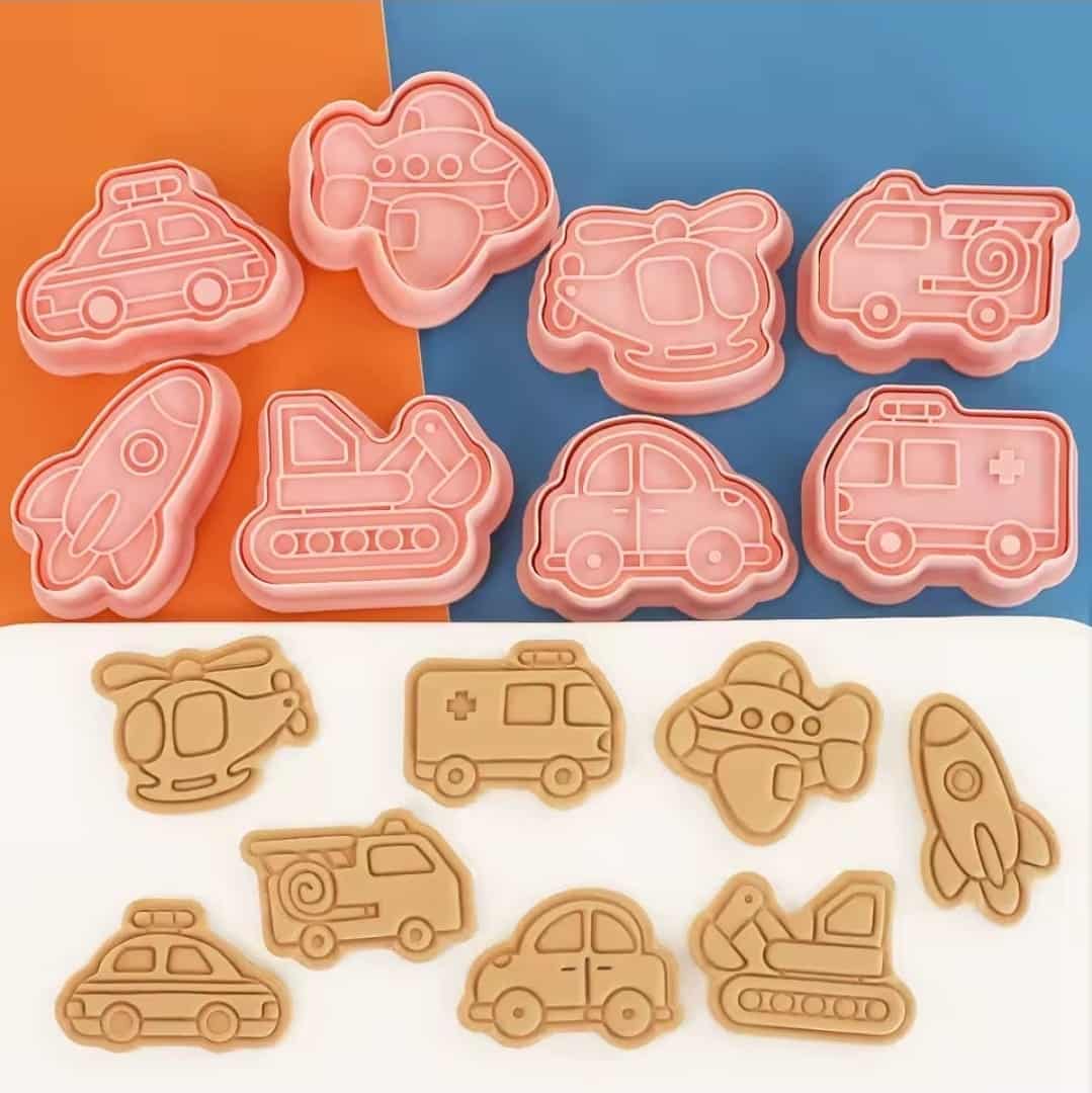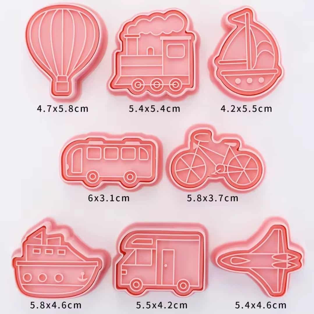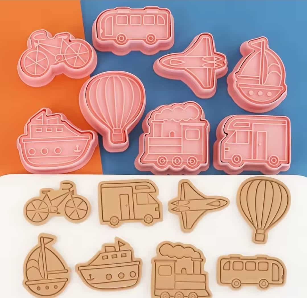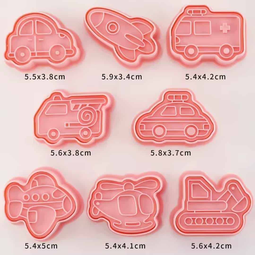 סט חותכני כלי תחבורה מושלם עם טקסטורה פנימית לייצר הטבעה בתוך העוגייה.