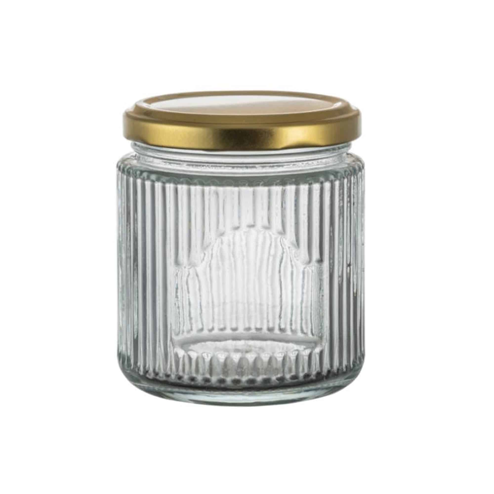 צנצנת עגולה פסים מכסה מתכת 7.5*8.2 ס"מ 280 מ"ל