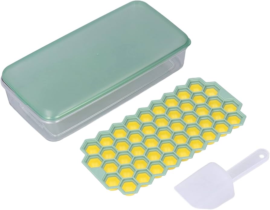 הקופסא מכילה 2 מגשים עם תחתית סילקון להכנת קרח וקופסא לאיחסון הקרח לאחר ההכנה.