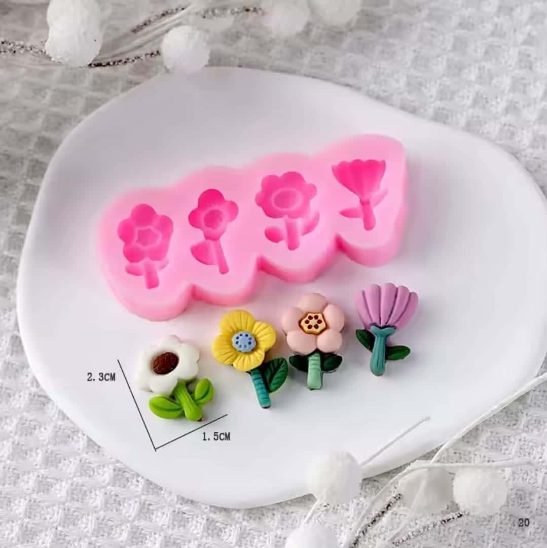 תבנית סילקון 4 שקעים פרחים עם עלים בלעדי!