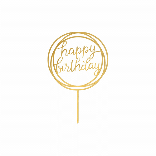 145E- טופר אקרילי Happy Birthday בעיגול זהב